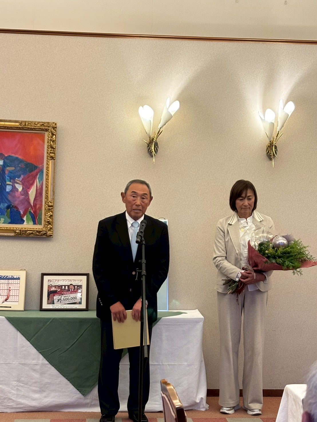 メッセージを頂いた後、参加者を代表して白井様から髙橋プロご夫妻に花束と皆様から頂いた